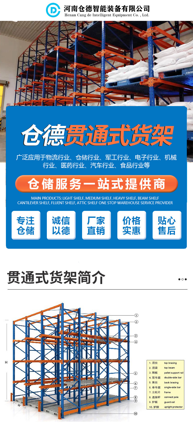 貫通式貨架又稱為駛?cè)胧截浖芑蛲ɡ刃拓浖堋X浖芴攸c(diǎn)如下: