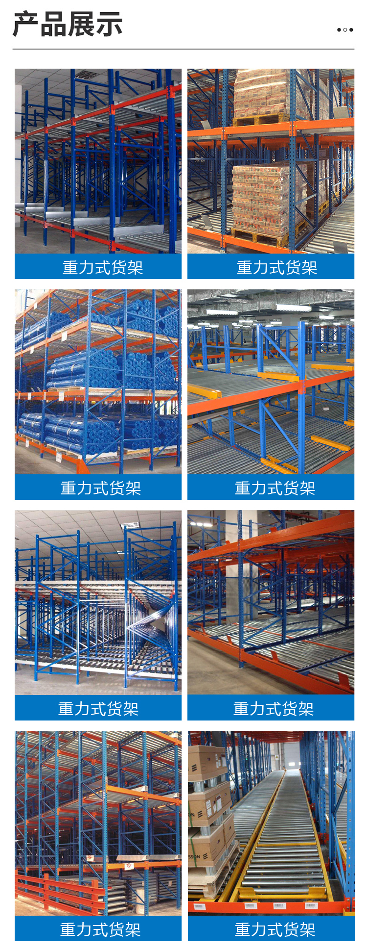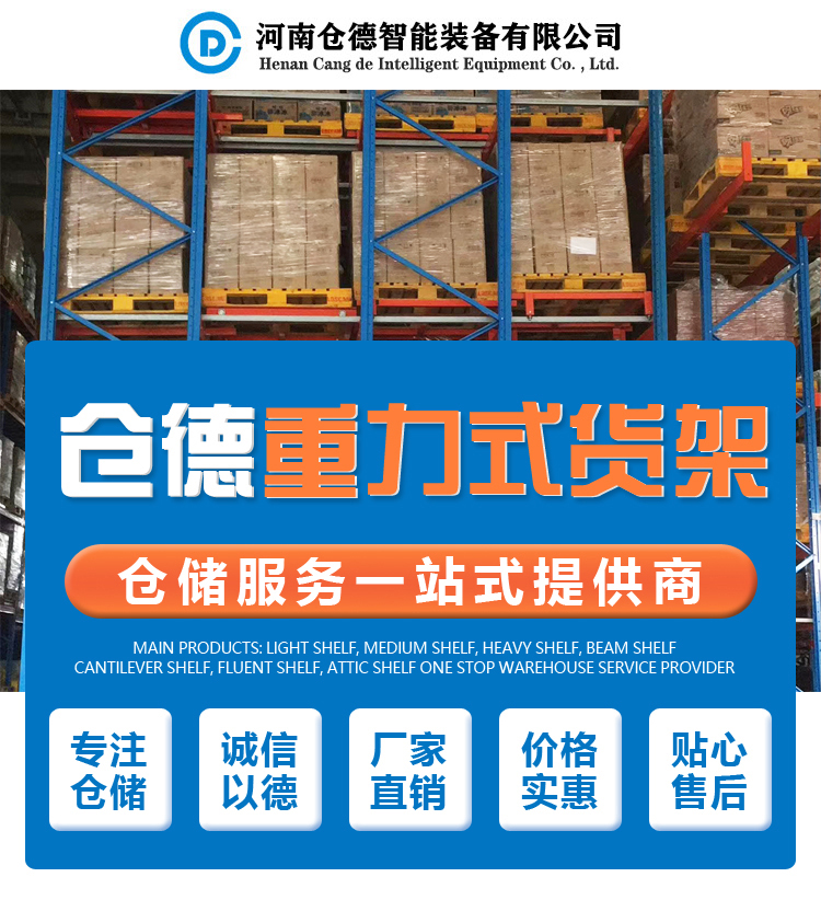 產(chǎn)品描述:重力式貨架又叫自重力貨架,屬于重型貨架,是由托盤式貨架演變而來的,適用于少品種大批量同類貨物的存儲,空間利用率極高,重力式貨架深度及層數(shù)可按需要而定。